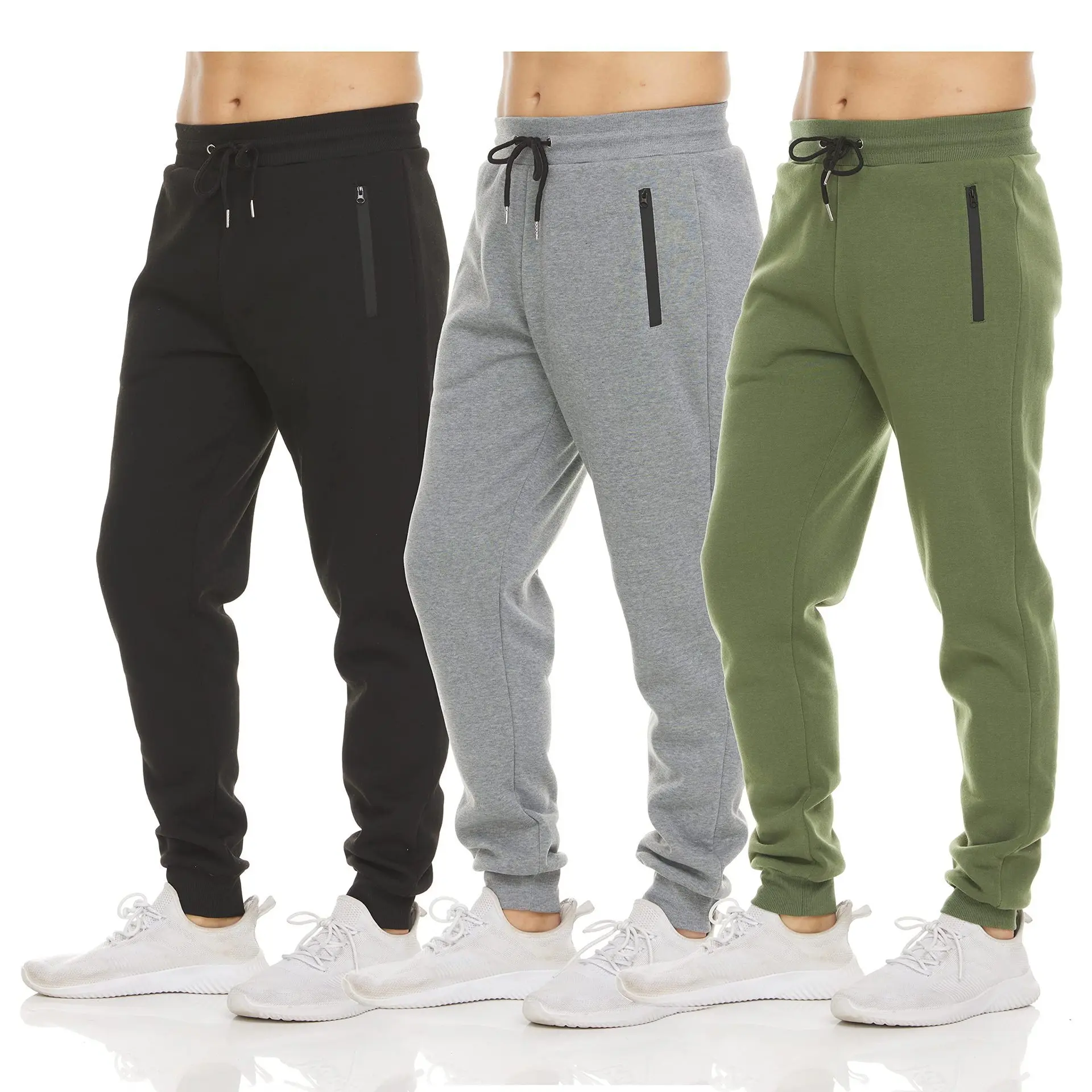 Men Elastic Running Training Pants Side Zipper Pockets Sport Trouser Jogging Sweatpants