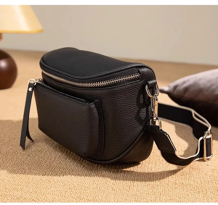 Natural Cow Leather Crossbody Saddle Bag