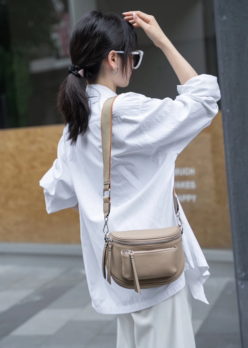 Natural Cow Leather Crossbody Saddle Bag